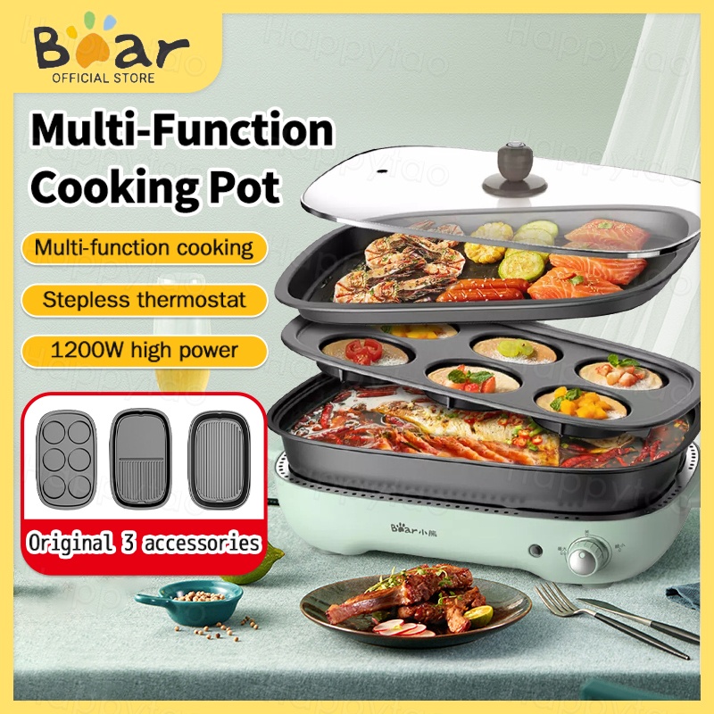 Bear Multifunction Grill Pan Household Electric Barbecue Machine Teflon Non Stick Coating Hot Pot Pan Frying Pan Shopee Singapore